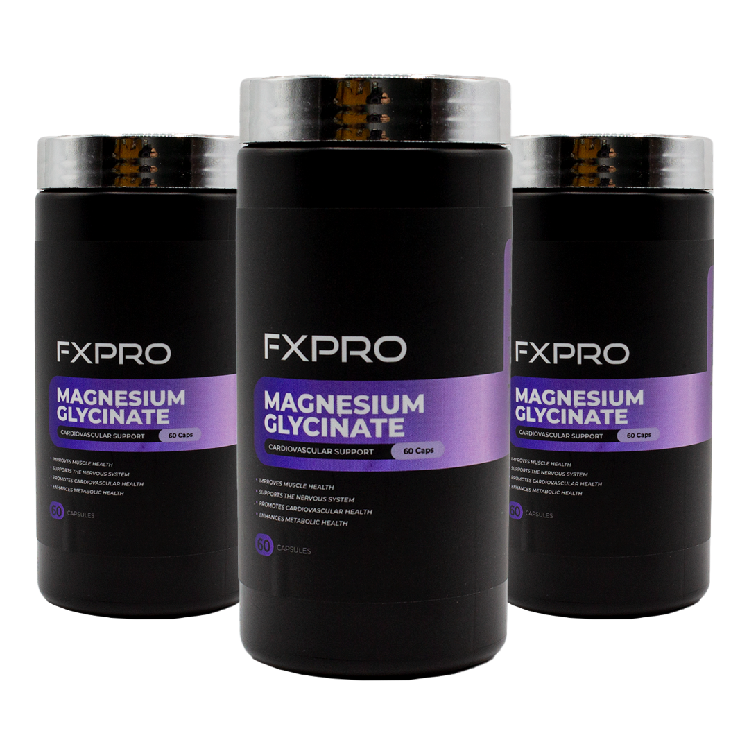 FX PRO Magnesium Glycinate apoya el sistema nervioso, mejora la función muscular, combate el estrés y fortalece tu salud cardiovascular y metabólica.